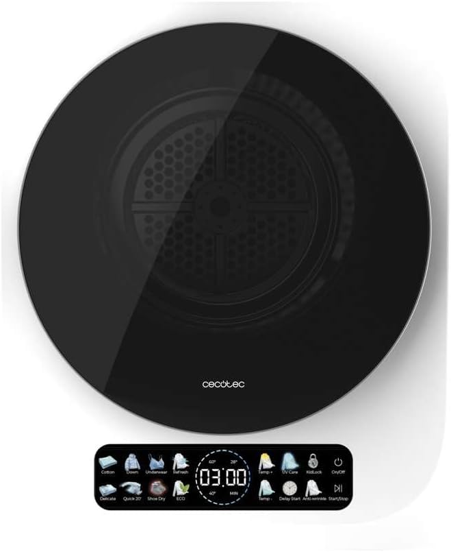 Cecotec Kompakter Ablufttrockner 3kg Bolero DressCode Dry 3600V Dark, 12 Programme, Klasse A, Intelligente Automatische Trocknung, FullColor Display, UV Care Funktion, Dry Shoe Pro, Dunkel
