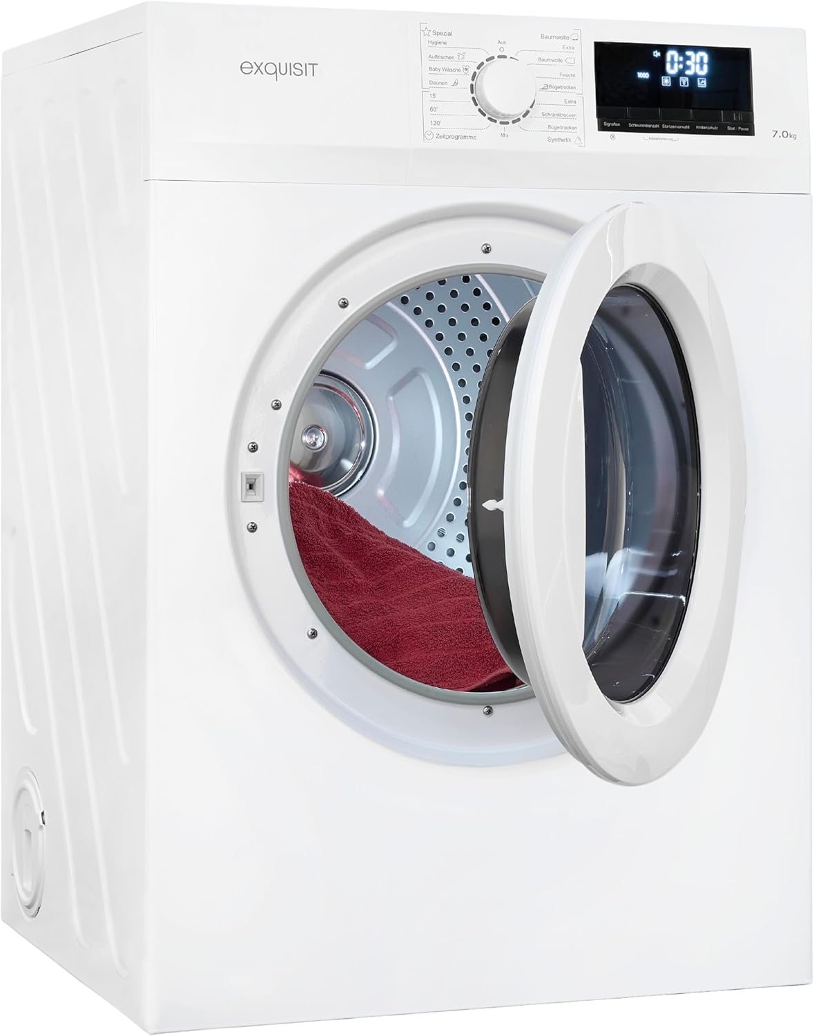 Exquisit Wäschetrockner 7kg, Trockner, Startzeitvorwahl, Knitterschutz, Ablufttrockner, 15 Programme, Kindersicherung, Energieklasse G, TAE70-70 weiss